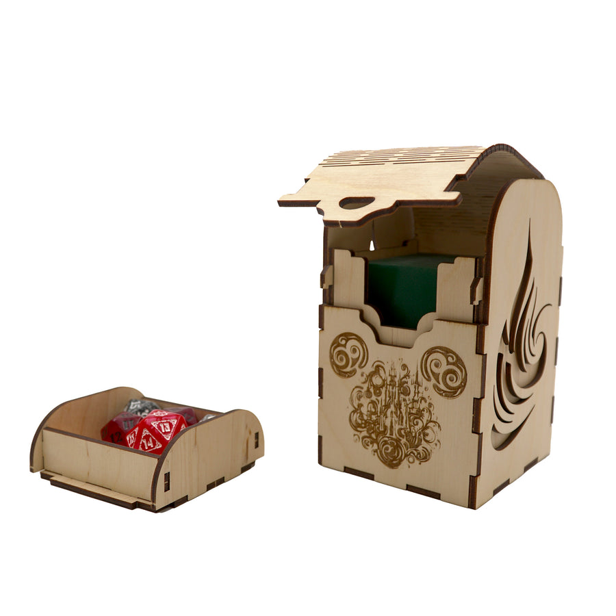 Our deck box features a small tray that fits in the lid and can accommodate your spin-down dice and game tokens.