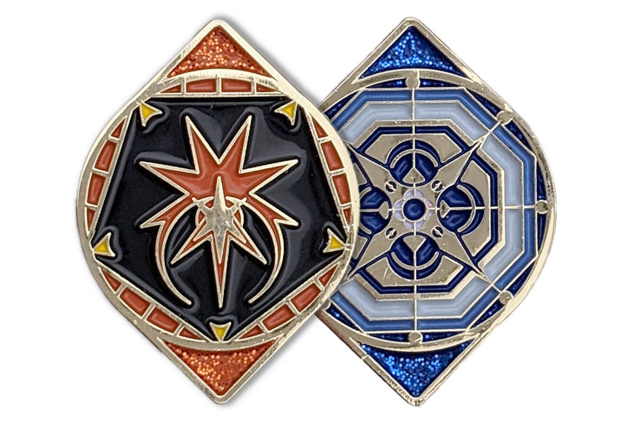 Be the envy of the table with these eye-catching tokens featuring custom symbols designed by Luxury Playstyle. With real 18K gold plating, these tokens will impress players at major tournaments, or sitting at your own local gaming table. Put these into another player's hands and notice their reaction. These have a solid metal weight and a beautiful black enamel that will demonstrate that you're playing in a league of your own.