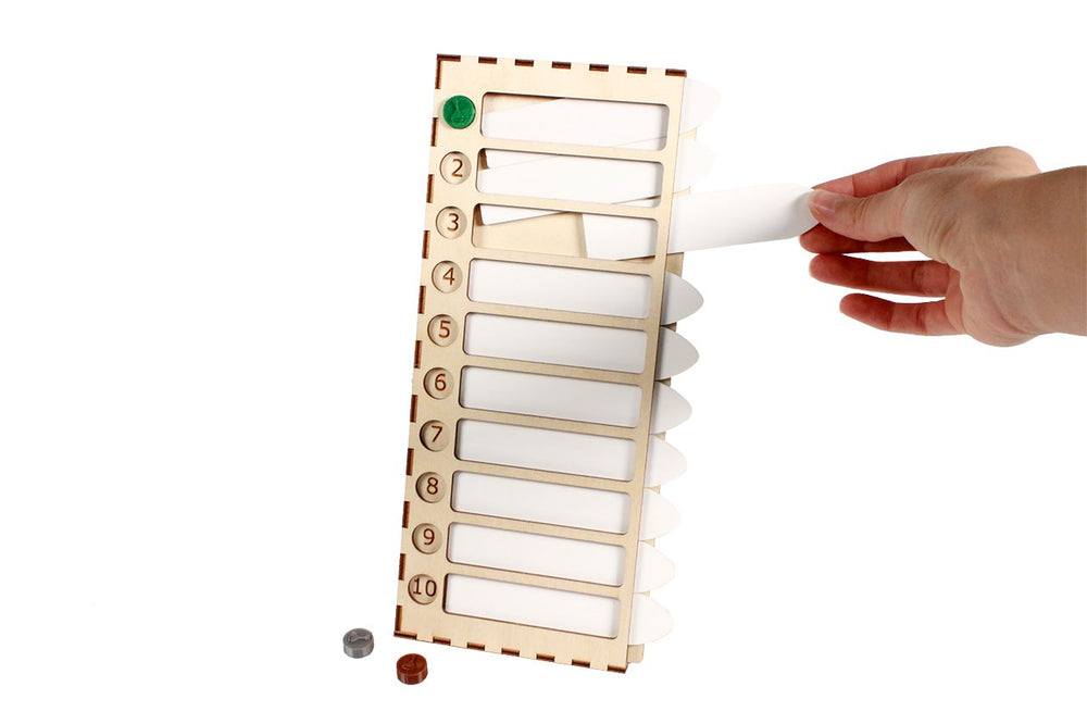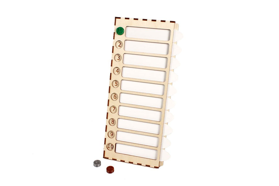 Easily track your Initiative with our Generic Initiative Tracker! Quickly change your initiative’s order by removing and sliding your markers into place. Each marker is white acrylic and can be used with dry erase markers. Includes 3 different colored pegs so you can clearly identify what round you are on and what round that bomb will explode! Stands vertically and lays flat.