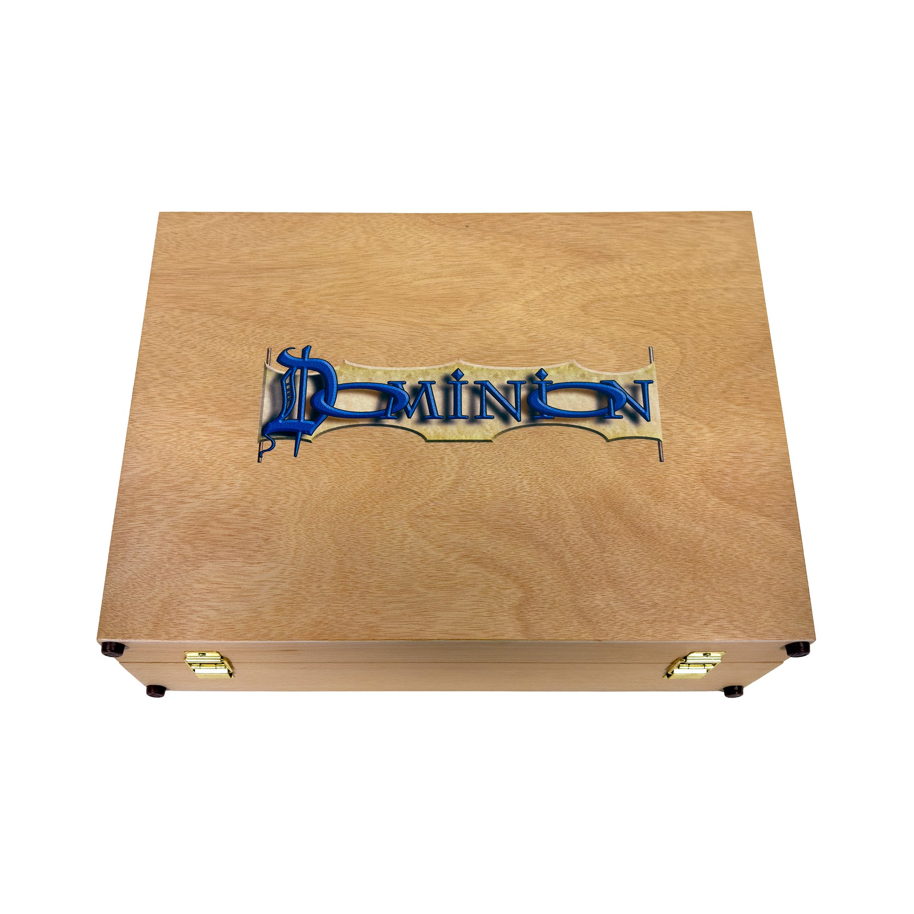 The Broken Token is proud to introduce our officially licensed Dominion storage solution. This custom wooden case is beautifully engraved with the Dominion logo and treated with Laser Dark for increased contrast. We install dual elastic straps in the lid to hold all of your manuals. This case includes our ORG140 organizer with 6 rows of card storage and 24 adjustable dividers.