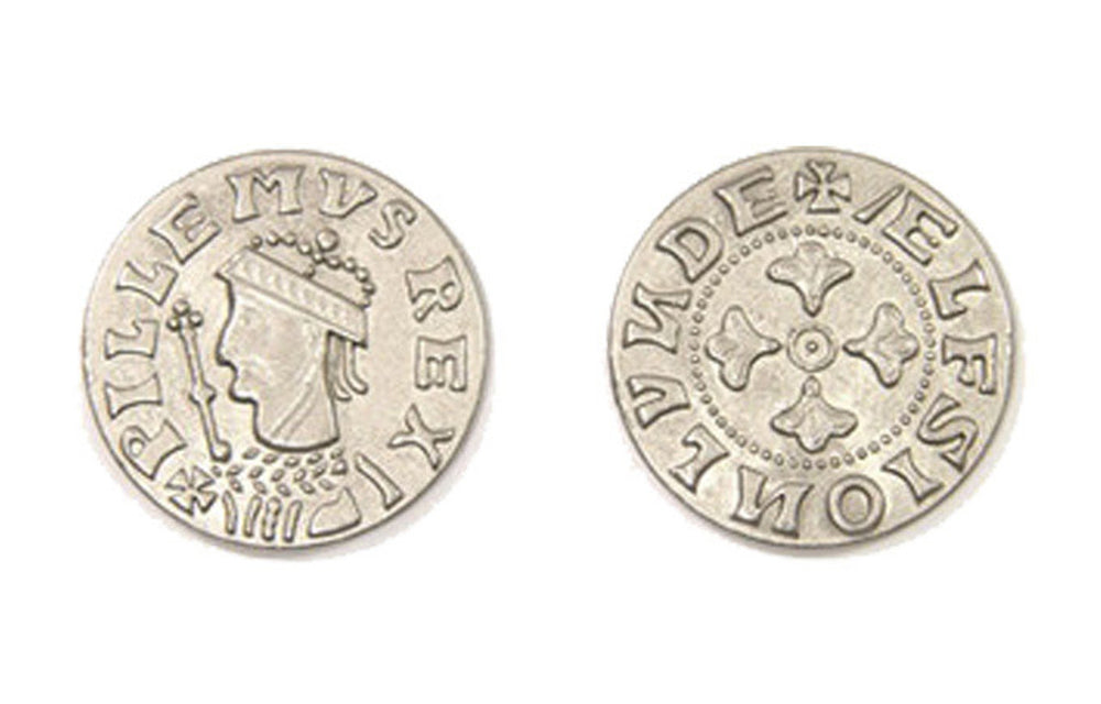 Includes 9 large (30mm) sized coins from the Middle Ages theme set. Inspired by Norman coins of the medieval era, these coins have a shiny nickel or silver-colored finish. Coins are approximately 3mm thick.