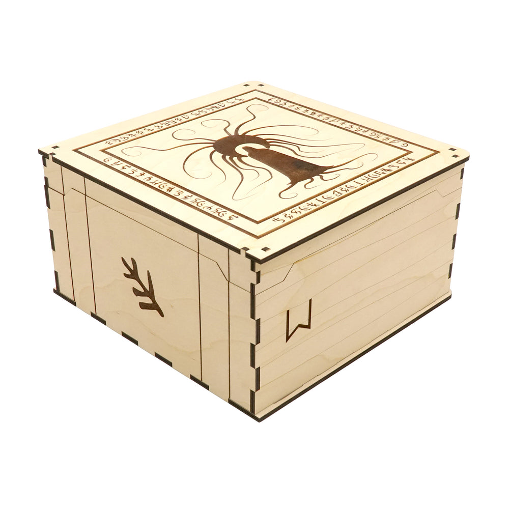Dark lore and forbidden knowledge of Arkham can be safely recorded and sealed in our game crate upgrade for our Arkham Horror 3rd Edition Compatible Base Game Organizer and Arkham Horror 3rd Edition Compatible Expansion Organizer (both sold separately). Featuring runes and an Elder Sign on the spine, this tome will keep your secret rituals and game safe and organized between sessions.