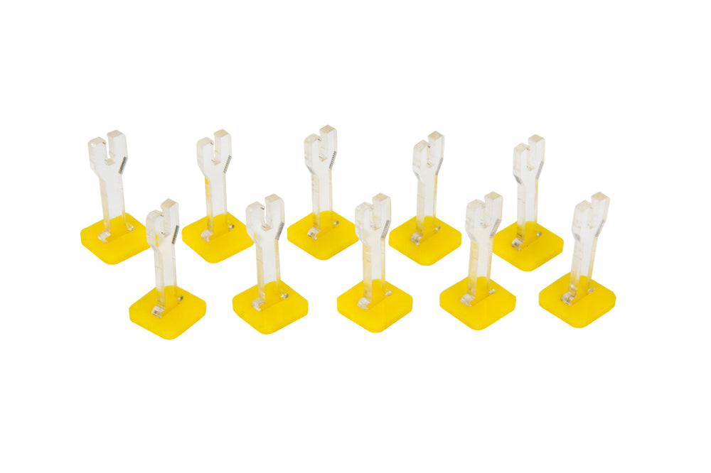 Upgrade your token game with these acrylic flying character stands. The clear acrylic stand riser adds to the illusion of flight, rising your flying character pieces above the board. Perfect for the flying drake pieces in Gloomhaven, and cardboard pieces from other games that have a thickness of 2.5mm. Each set comes with 10 stands. Also available with clear or white bases.