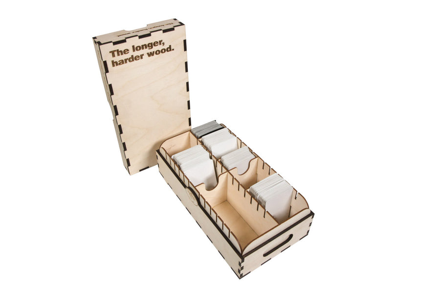 The Longer, Harder Wooden Card Case is a harder, and longer card storage solution with adjustable dividers and support for sleeved or unsleeved cards to satisfy your organizing needs. Our new card case comes in two different settings. A two-row and now a three-row for those who need a little something extra. No matter what size you choose, each case allows for easy access and maneuverability of your cards.