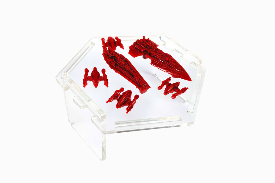 Measuring approximately 83mm (3.25") from foot to foot our Fleet Stands are made of clear acrylic, easily assemble and disassemble for storage, and feature tabbed feet and slotted tops to allow for infinite stacking.
