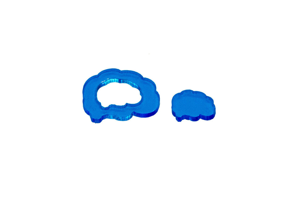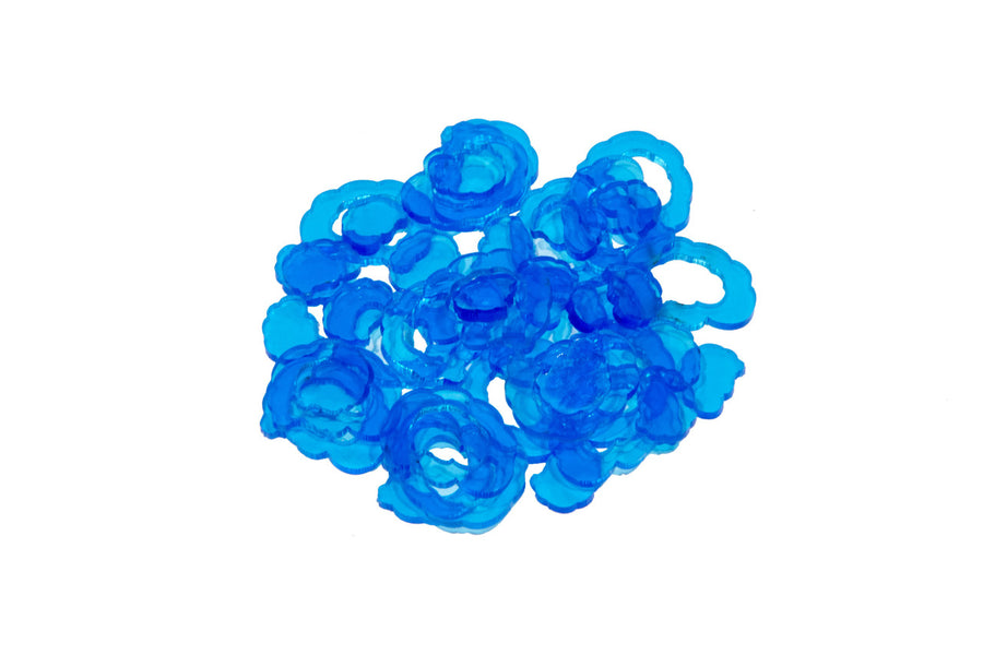 A set of 20 large and 20 small blue transparent brains cut from high-quality cast acrylic. The large brains fit around the small ones to indicate a higher quantity, like 3 or 5, depending on the game. Perfect for games like Elder Sign!