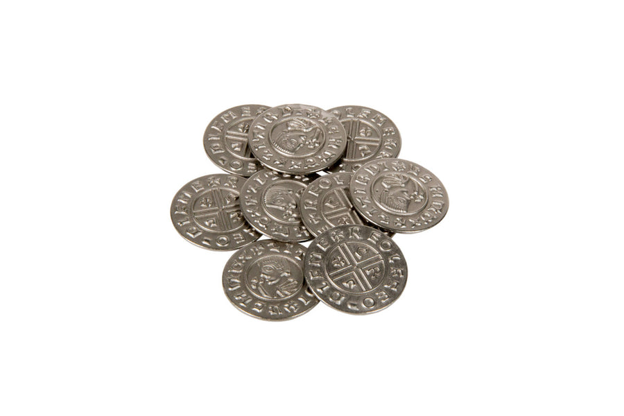 Includes 9 large (30mm) sized coins from the Viking theme set. Coins are approximately 3mm thick.