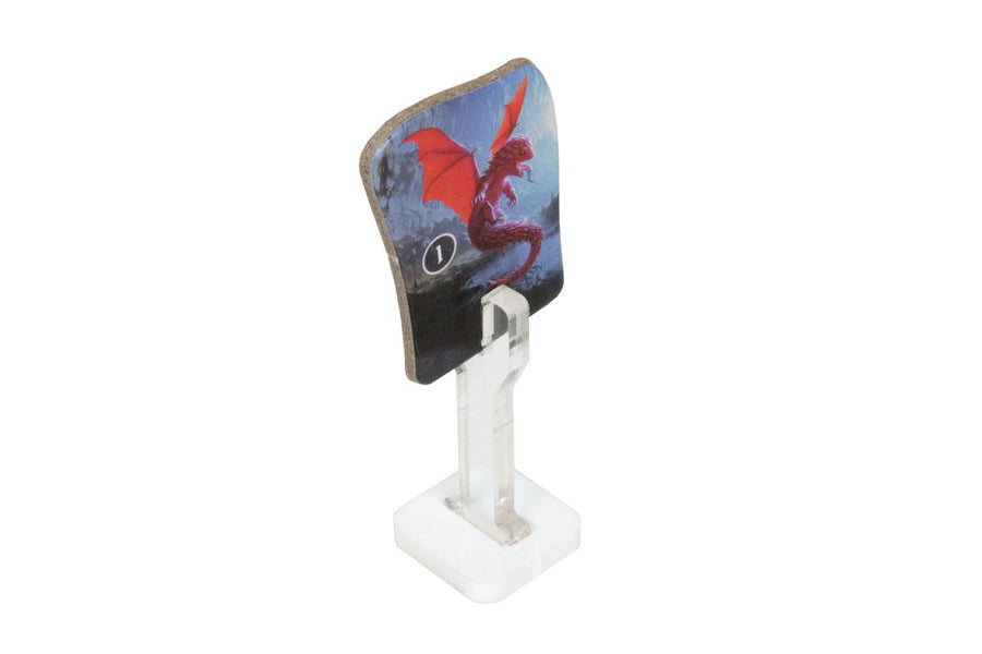 Upgrade your token game with these acrylic flying character stands. The clear acrylic stand riser adds to the illusion of flight, rising your flying character pieces above the board. Perfect for the flying drake pieces in Gloomhaven, and cardboard pieces from other games that have a thickness of 2.5mm. Each set comes with 10 stands. Also available with yellow or clear bases.